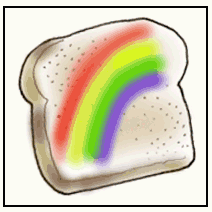 - Invite her to use a paintbrush to paint a rainbow on the bread slice with the colored milk. She can draw any design she wishes