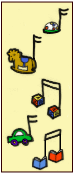 - On four paper strips, write the name of a song which both you and your child know quite well.