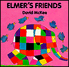 Elmer the patchwork elephant finds something unique to admire in each of his many different animal friends.
