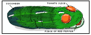 - Help him cut a wedge for a mouth, placing a bit of red pepper or tomato inside for the tongue.