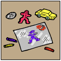 While you are having fun together, this activity helps your child develop small muscle skills, eye/hand coordination and an understanding of "same and different."