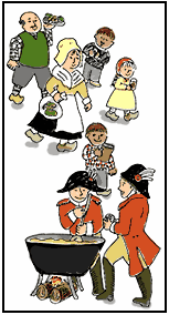 a copy of the story "Stone Soup" 1/2 cup peas 1/2 cup diced carrots parsley 1 onion, chopped 2 potatoes, diced 2 or 3 celery stalks, diced 3 cans of chicken or vegetable broth 3 washed and cleaned "soup stones" soup pot spoon sharp knife (ADULT USE) measuring cup