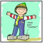 - Make pretend skates out of your child's shoe boxes and let him figure-skate on paper shapes and taped patterns on the bare floor.