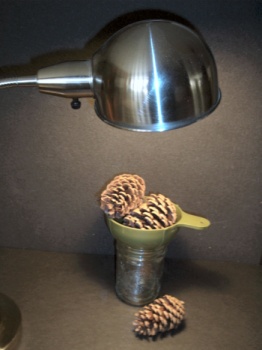 - Place the light about 2 - 4 inches above the pine cone.