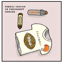 -  Plan a design for a football shirt that each of you can wear while you watch the game.  Sketch team names and colors, favorite players' numbers or other football designs on a piece of paper.
