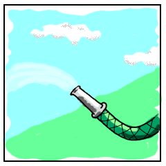 - Hold a running hose of water allowing the water to zig-zag across the ground.
