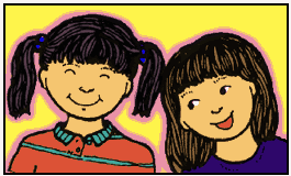 discarded magnetic business cards (or magnetic tape available at craft stores) wallet-sized photos of your child and a friend pencil scissors fabric or wallpaper scraps glue