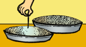 - Let your child sprinkle some pepper onto the water in each of the pie plates and observe what happens.