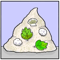 measuring cup 1 cup sand saucepan bowl 1/2 cup cornstarch 3/4 cup water cookie sheet or tray shells or pebbles leaves