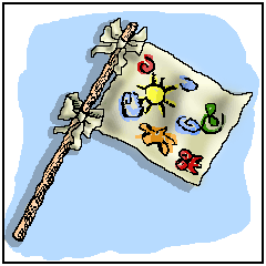 - Invite your child to use the crayons to draw symbols and designs on white paper for a personal flag. Encourage your child to press hard on the crayon. (Tip: Encourage your child to draw designs that tell something about his or the family's interests. Together you create a family flag.)